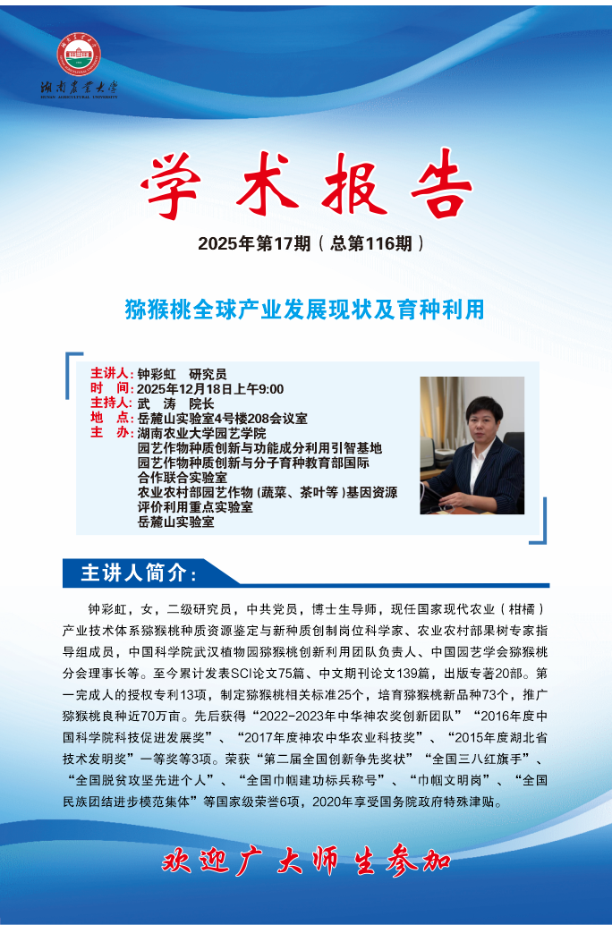 园艺讲坛第116期-名师讲坛猕猴桃全球产业发展现状及育种利用